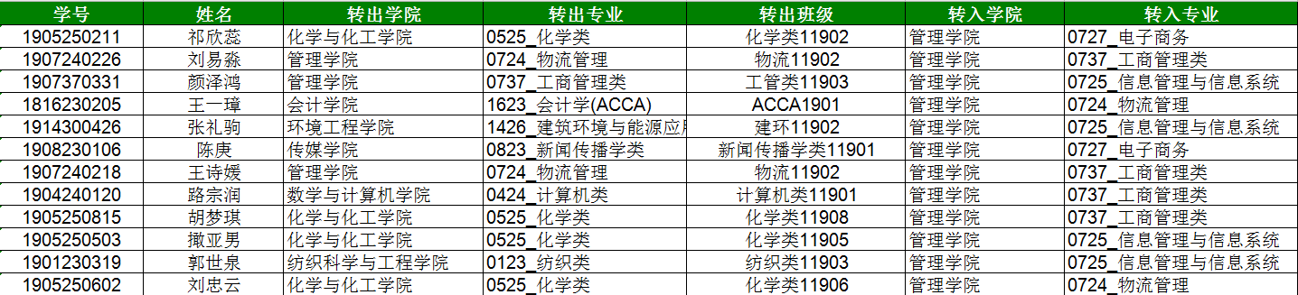 WilliamHILL中国2019--2020学年第二学期,2019级转专业名单如下:
