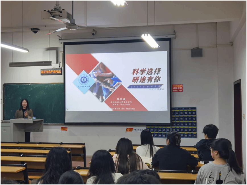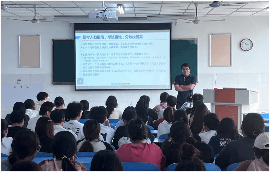 9月25日在文华学院的考研招生宣讲会上,孙昳老师为在场的学生提供了一场详尽的招生政策解读。她从招生计划的制定原则入手,阐述了学校如何吸引和选拔具有多元化背景的优秀学生。详细介绍了报名流程的各个环节,包括网上报名、材料提交、初试与复试的安排,以及录取过程中的评价标准。并提供了一些备考锦囊,如如何平衡生活和学习、如何选择合适的复习资料、如何进行有效的模拟测试等。