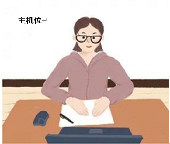 提示:1.主机位。主机位设备用于考生人脸识别、身份验证,登录系统,查看试题,面试时与考官互动等。考生本人正对摄像头,保持姿势端正,面部、上半身及双手在画面中清晰可见。不得遮挡脸、耳朵等部位,不得佩戴耳饰、帽子、墨镜、口罩等。复试全程考生应保持注视摄像头,视线不得离开,不得中途离场。