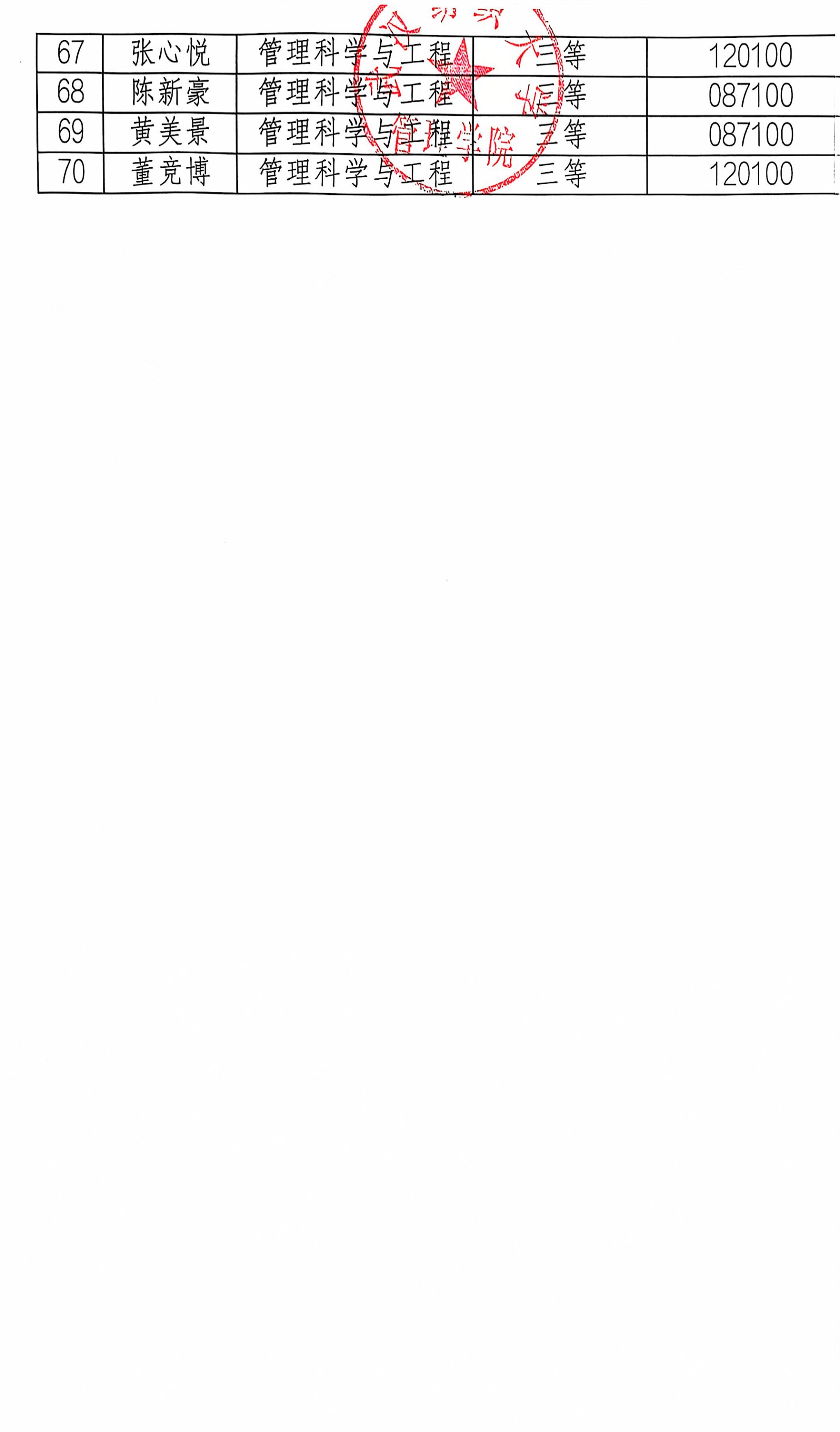 根据研究生处《关于做好2024-2025学年研究生学业奖学金评定工作的通知》要求,经学生个人申请、资格审查、奖学金评定小组复核与评议,现将评定结果公示如下: