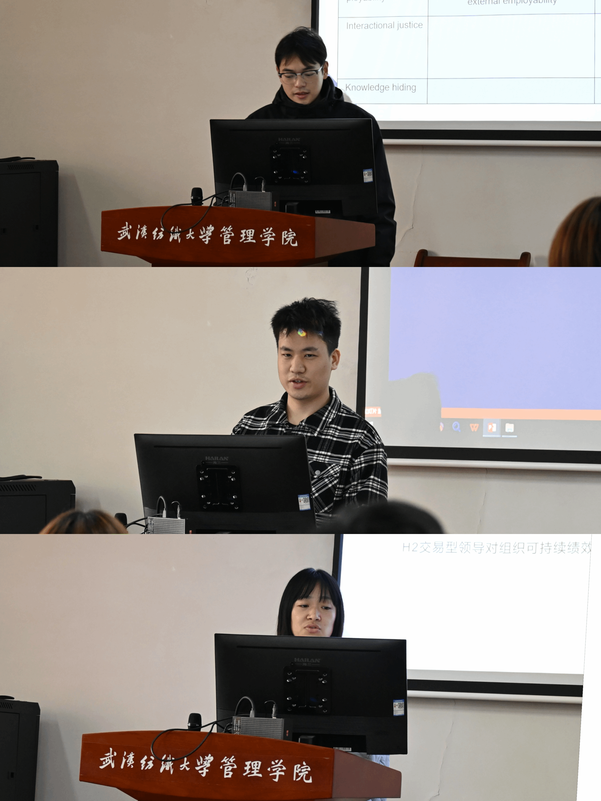 首先分享的是23级的侯常敏同学,他介绍了论文《The Path from Paradoxical Leadership to Diminished Knowledge Hiding: Exploring the Role of Interactional Justice and Employability》,通过对359名中国大陆员工的问卷数据进行PLS-SEM分析发现,悖论性领导能够显著减少知识隐藏行为,而互动公平在这一过程中起到了部分中介的作用。其次,来自22级的程煜同学带来了论文《盒马鲜生冷链物流成本控制分析》,探讨了冷链物流成本控制对提升企业竞争力及消费者满意度的影响,为生鲜电商行业的发展提供了重要的参考建议。最后,22级的张越同学分享论文《Green supply chain management and firm sustainable performance: unlocking the role of transactional and transformational leadership in firm sustainable operations》,探讨了公司可持续供应链运营与领导力之间的关系,重点比较变革型领导与交易型领导对绿色供应链管理(GSCM)及公司可持续绩效的影响。
