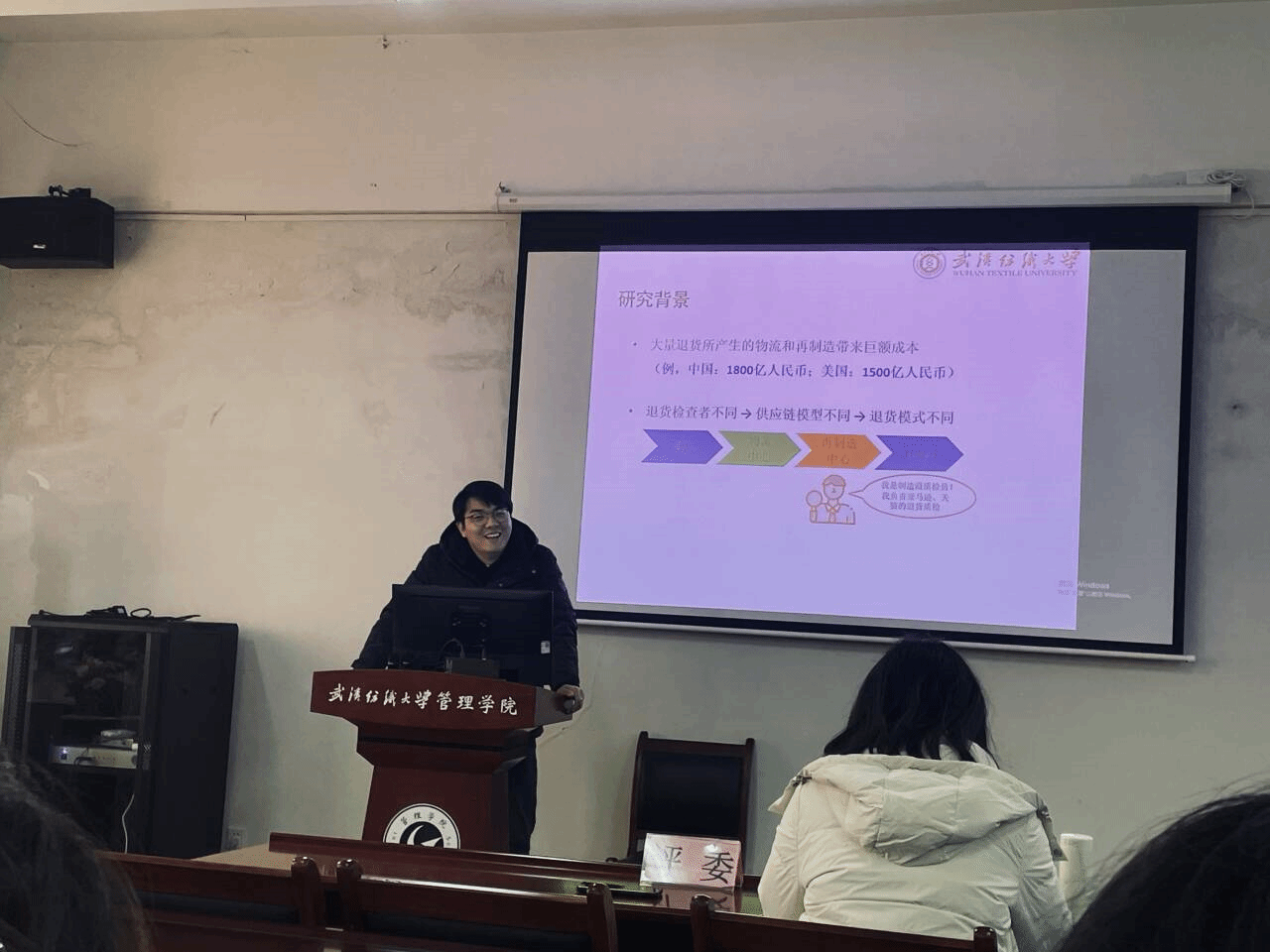 随后,22级的侯剑同学带来了《Analysis of bullwhip effect in the online closed-loop supply chain》的分享,深入探讨了在线闭环供应链中退货决策对牛鞭效应的影响。首先研究了当检测系统由物流中心或再制造商承担时的最优退货模式。然后,在不同的供应链环境下,以最小化牛鞭效应为目标,优化了网络零售商的退货决策。分析结果表明:在大多数情况下,减轻牛鞭效应的最优决策是将检验系统设置在物流中心。该项研究为管理者在不同的电子商务环境下制定退货政策和资源配置提供了深刻的见解。