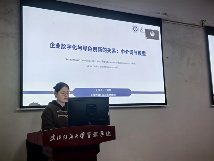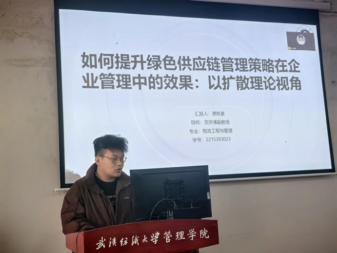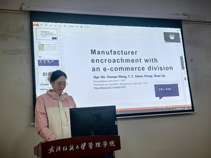 首先,是22级符明哲线上为我们汇报了他的小论文《考虑消费者在线评论的双渠道闭环供应链以旧换新定价决策》,探讨了企业是否建立消费者评论系统并授权零售商以旧换新,分析了消费者在线评论对供应链定价和利润的影响;接着,由22级费轶豪介绍了论文《如何提升绿色供应链管理策略在企业管理中的效果:以扩散理论视角》,得出了通过绿色倡议和差异化战略,企业可实现长期环保与财务绩效的双赢的结论。