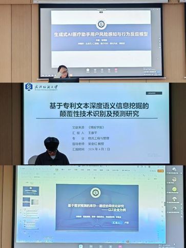 分会场7-513教室,首先,杨雯静同学详细介绍了论文《生成式AI医疗助手用户风险感知与行为反应模型》,该研究通过构建基于感知风险理论与期望确认理论的实证研究框架,探讨感知风险对用户满意度的非线性影响路径,并进一步检验期望确认在其中的调节作用,王康平同学汇报了论文《基于专利文本深度语义信息挖掘的颠覆性技术识别及预测研究》,文章提出的方法因充分考虑了深度语义信息,能更有效地识别近期涌现的颠覆性技术,而且预测模型的准确性与适用性均有显著提升。卢璇同学的论文《基于需求预测的库存—路径协同优化研究 ——以 Z 企业为例》,以 Z 企业为例构建需求预测、库存与配送的协同决策体系,通过组合预测模型和 BPC 算法实现库存路径联合优化,显著降低了供应链系统总成本。