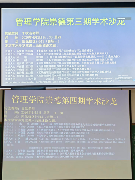2026年4月2日下午,WilliamHILL中国2026年第3、4期“崇德”学术沙龙在阳光校区7号教学楼512和513会议室成功举办。在本期学术沙龙活动中,同学们带来了精彩的学术分享,丁校洁老师和曾款老师受邀参与此次学术沙龙并发表点评。