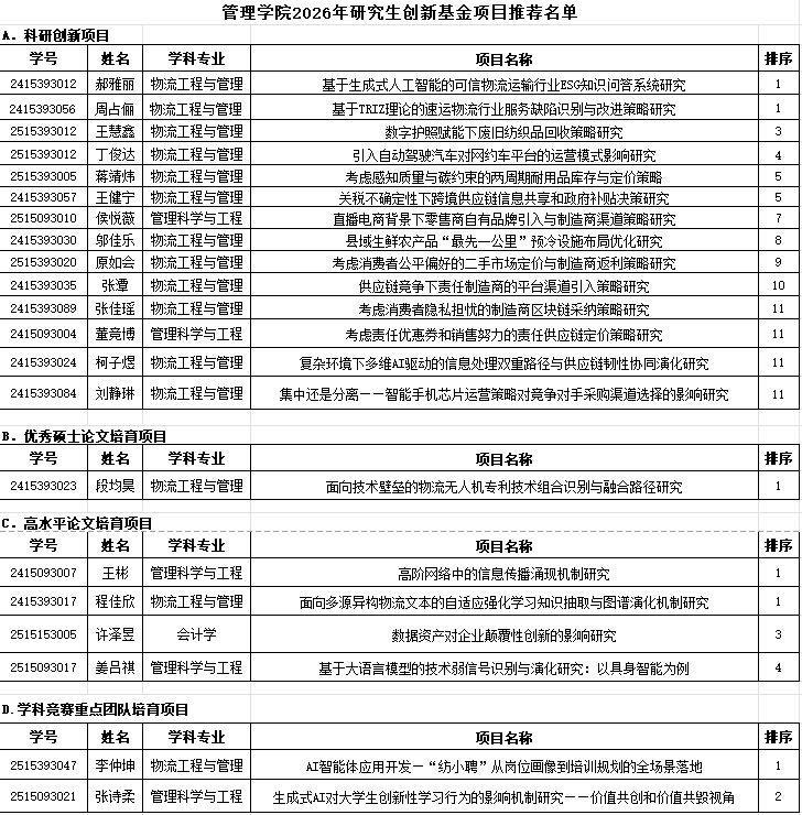 根据williamhill官网2026年研究生创新基金项目申报要求,学院开展了相关评审工作。经学生个人申请,学院评审,WilliamHILL中国2026年研究生创新基金项目拟推荐名单如下: