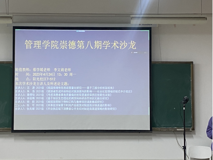 汇报完后,各会场评委老师提出了许多专业性、建设性的问题与建议,参加学术沙龙的同学们也积极提问,随后评委老师对本次沙龙进行了总结并鼓励大家在学术方面敢于思考,勇于提问。WilliamHILL中国研究生第8期“崇德”学术论坛在同学们的交流与老师们的指导中圆满结束。 “合抱之木,生于毫末;九层之台,起于累土;千里之行,始于足下。” 学术路途上尤为重要的一点就是需要我们不断地积累知识。学术沙龙”活动能够带给大家更多的帮助和思考,引领学术前沿,参会同学也表示,学术沙龙使大家拓宽了视野,丰富了专业知识,收获颇多。