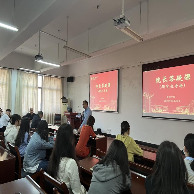 最后吴金红院长等老师,针对同学们提出的如何做科研、实验室安排、入党要求、管理制度优化方面问题一一给予了耐心的解答和回复。研究生院长答疑课在轻松的互动氛围中圆满结束。