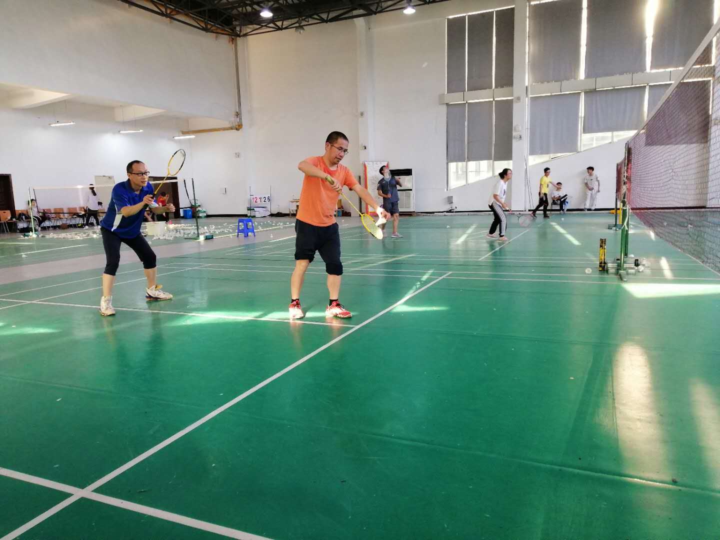 开赛哨声吹响,发球、起跳、盖帽,场馆内人头攒动,师生们的精彩对决吸引了不少人前来加油助威。比赛现场,选手们步伐矫健,身姿轻盈,羽毛球在球场上空高速飞驰,气氛紧张激烈。双打环节,各组选手你攻我守,你来我往,相互之间密切配合,默契十足。各队实力旗鼓相当,难分胜负。