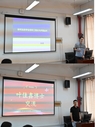 张星和德育导师叶佳鑫作为教师代表,就如何引导学生做好考博规划给大家分享了自己的经验。张星结合自己的经历,建议大家考博要有正确的动机,并对研究生的学业目标工程化与矛盾应对提出了自己的见解。叶佳鑫分享了自己在考博读博期间的心得、成长与收获,鼓励大家砥砺笃行,铸造理想的丰碑。